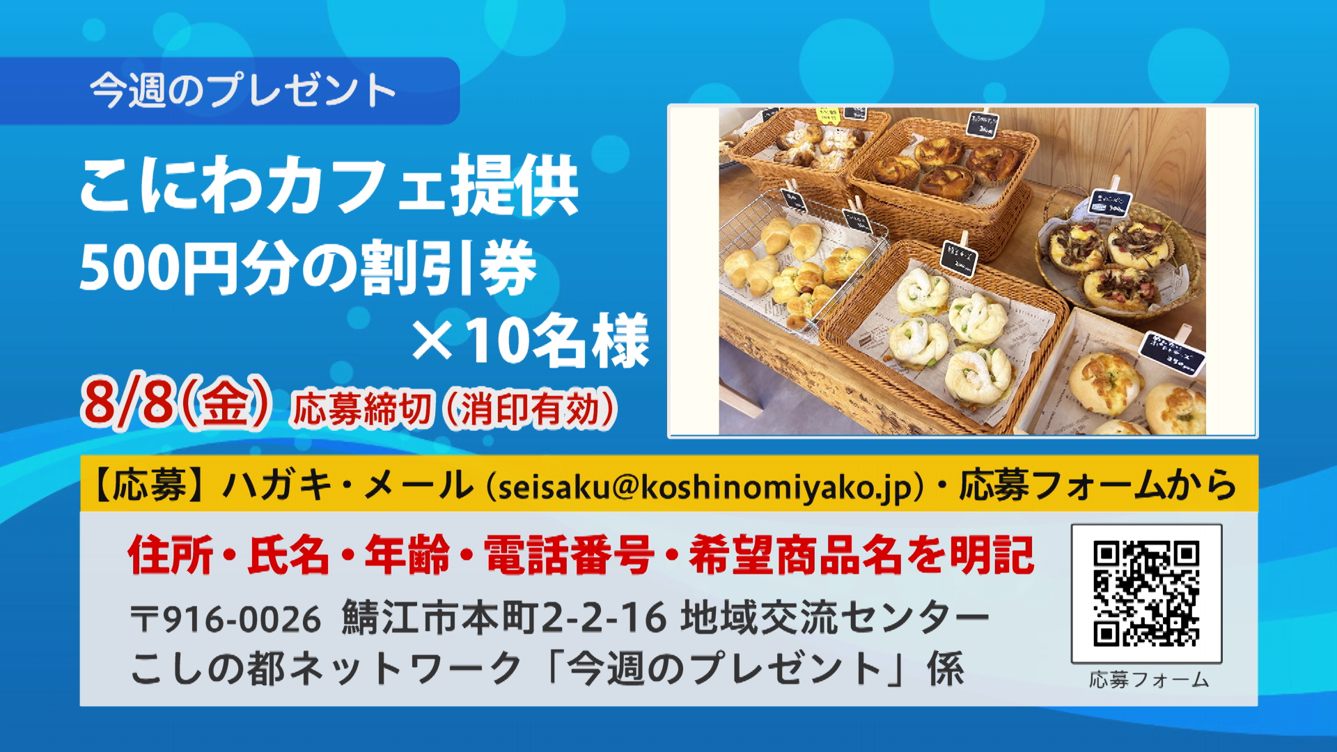 1.こにわカフェ提供_500円分の割引券×10名様:応募締切:8月8日(金)