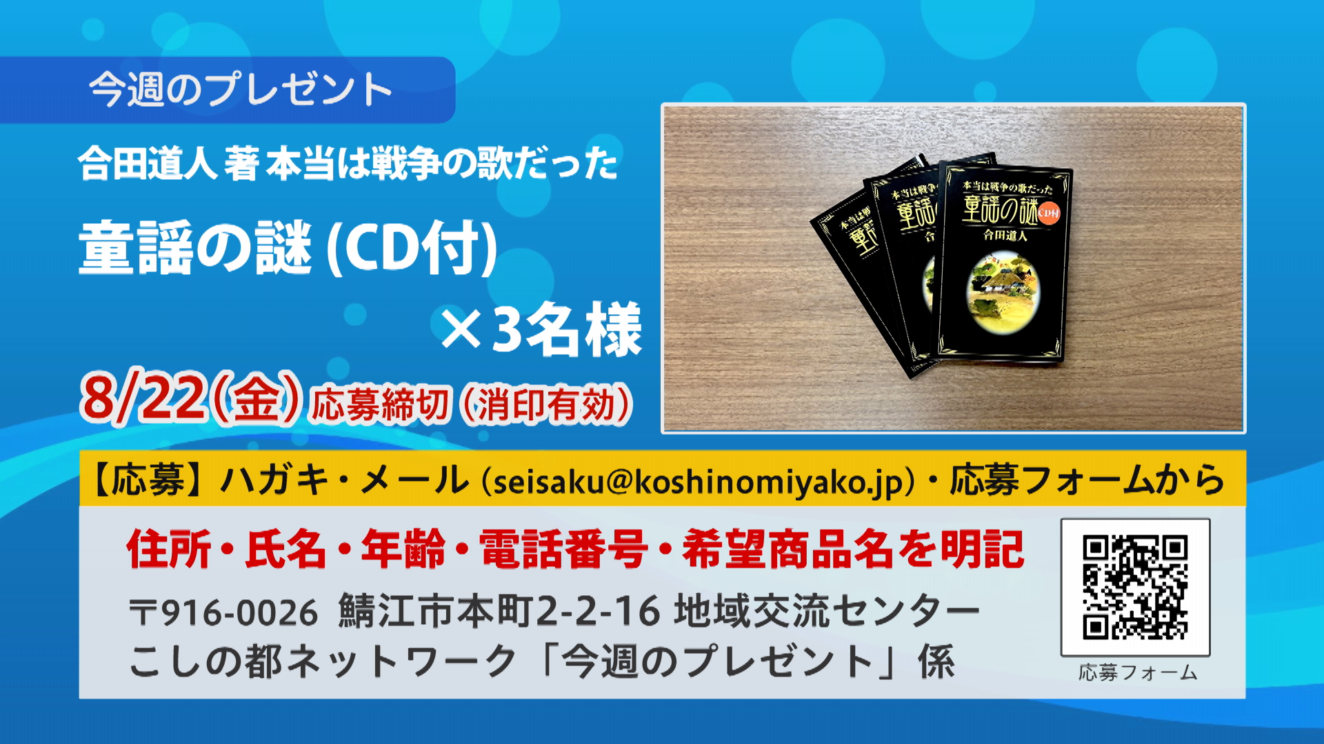 1.合田道人 著_本当は戦争の歌だった童謡の謎(CD付き)×3名様:応募締切:8月22日(金)