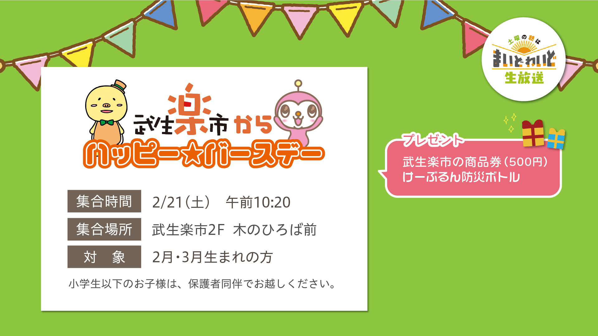 お誕生月をお祝いする武生楽市からハッピーバースデーのコーナー!